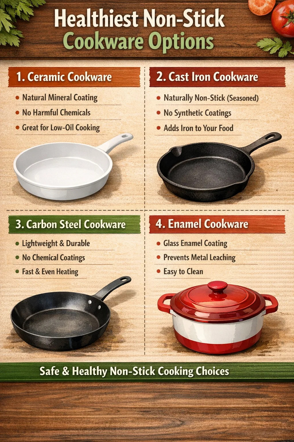 Ниже приводится подробное описание нескольких типов посуды с антипригарным покрытием, которая считается самой полезной для здоровья: