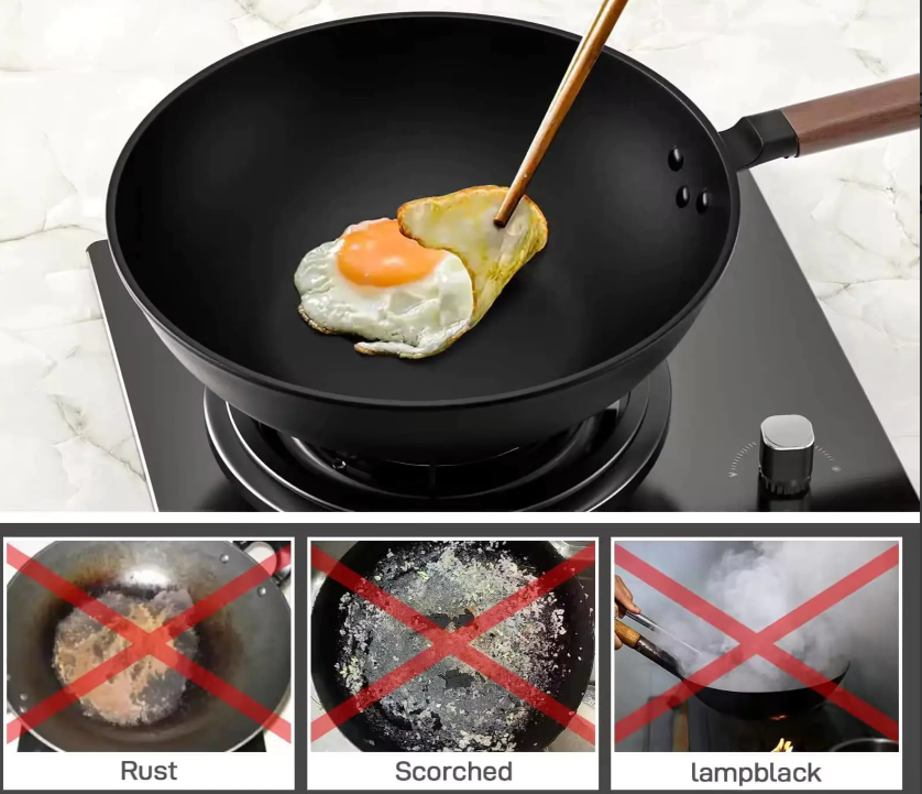 Традиционные железные кастрюли: поверхность грубая, а смазка должна заполнить поры, чтобы предотвратить прилипание, поэтому необходимо больше масла.